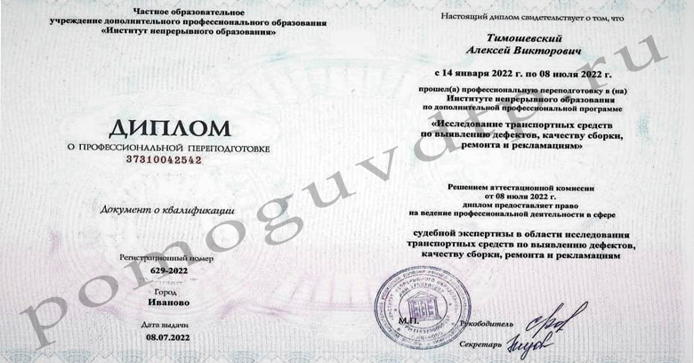 Автоэкспертиза проводится дипломированным специалистом, который состоит в реестре оценщиков.